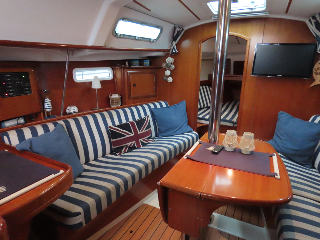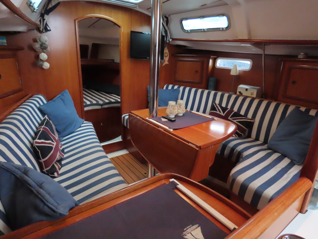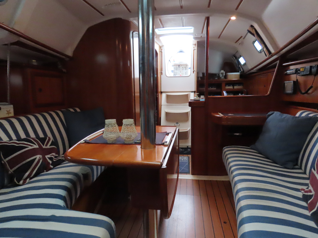 Snelle en ruime boot. Gezelling interieur met twee hutten met vier vaste slaapplaatsen. Verwarming, boiler, kuiptent, ankerlier en gennaker.