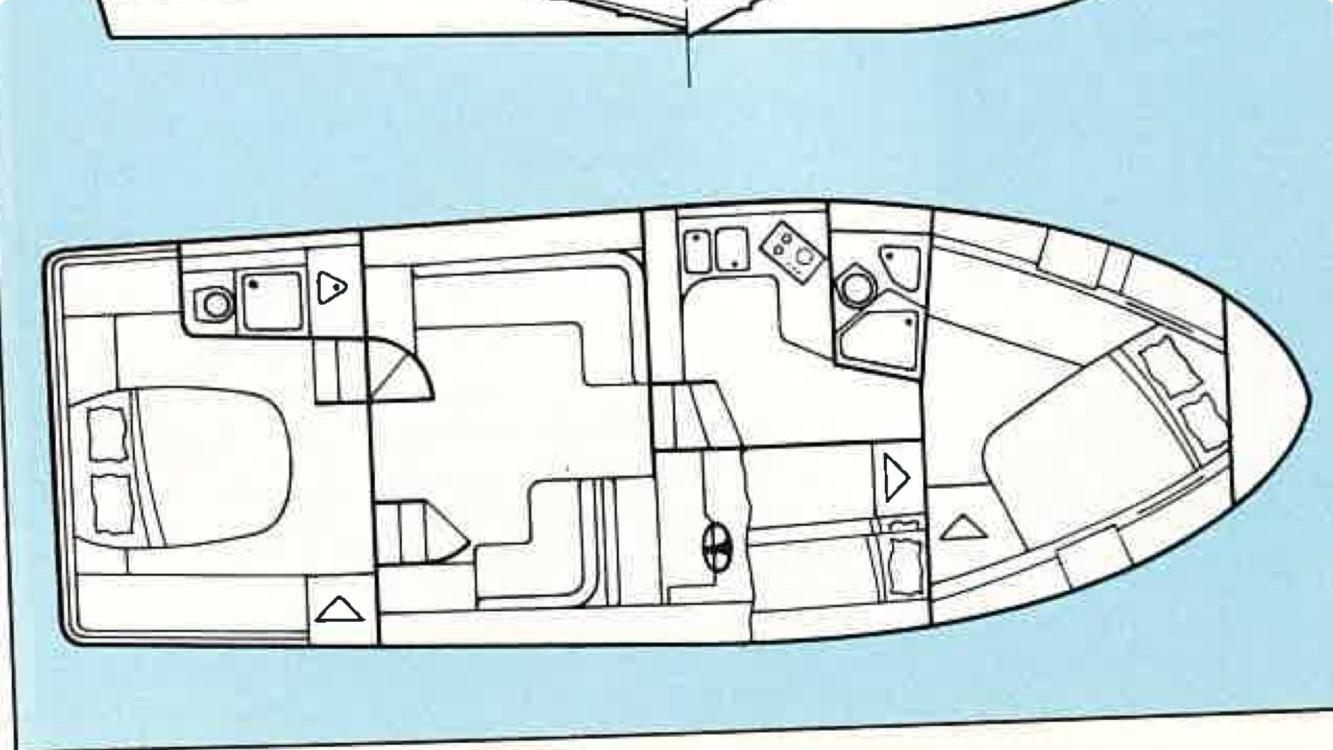 Twee hutten met 4 vaste slaapplaatsen, beide met douche/ toilet. Dinette (2-persoonsbed) af te schermen d.m.v. gordijn. Ruime salon en achterkajuit met Frans bed.