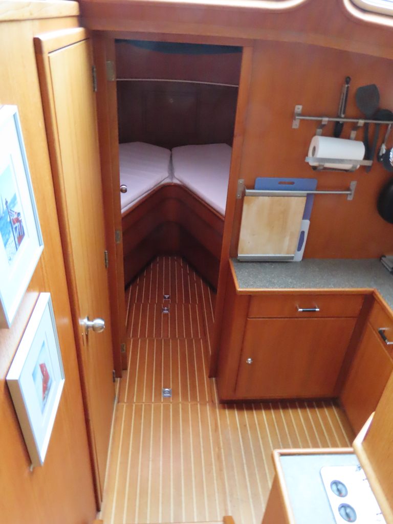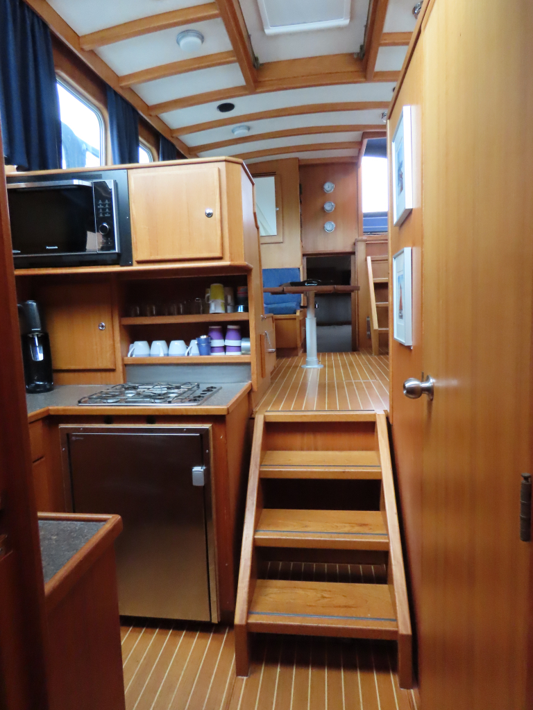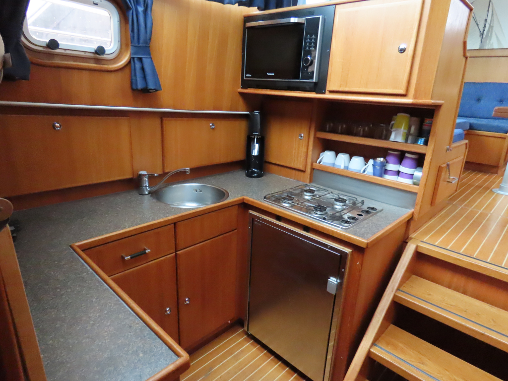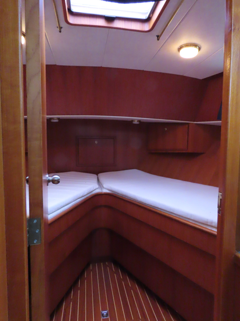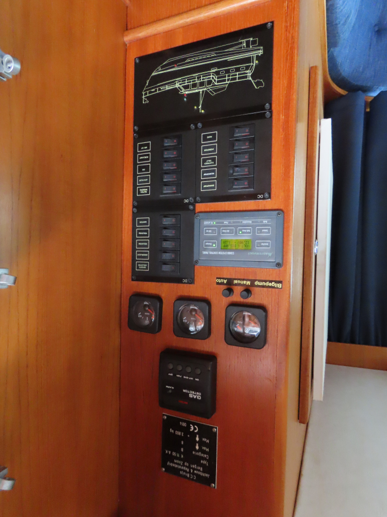 Boeg- en hekschroef, verwarming, lader/ omvormer en navigatieapparatuur. Twee hutten met vier vaste slaapplaatsen.