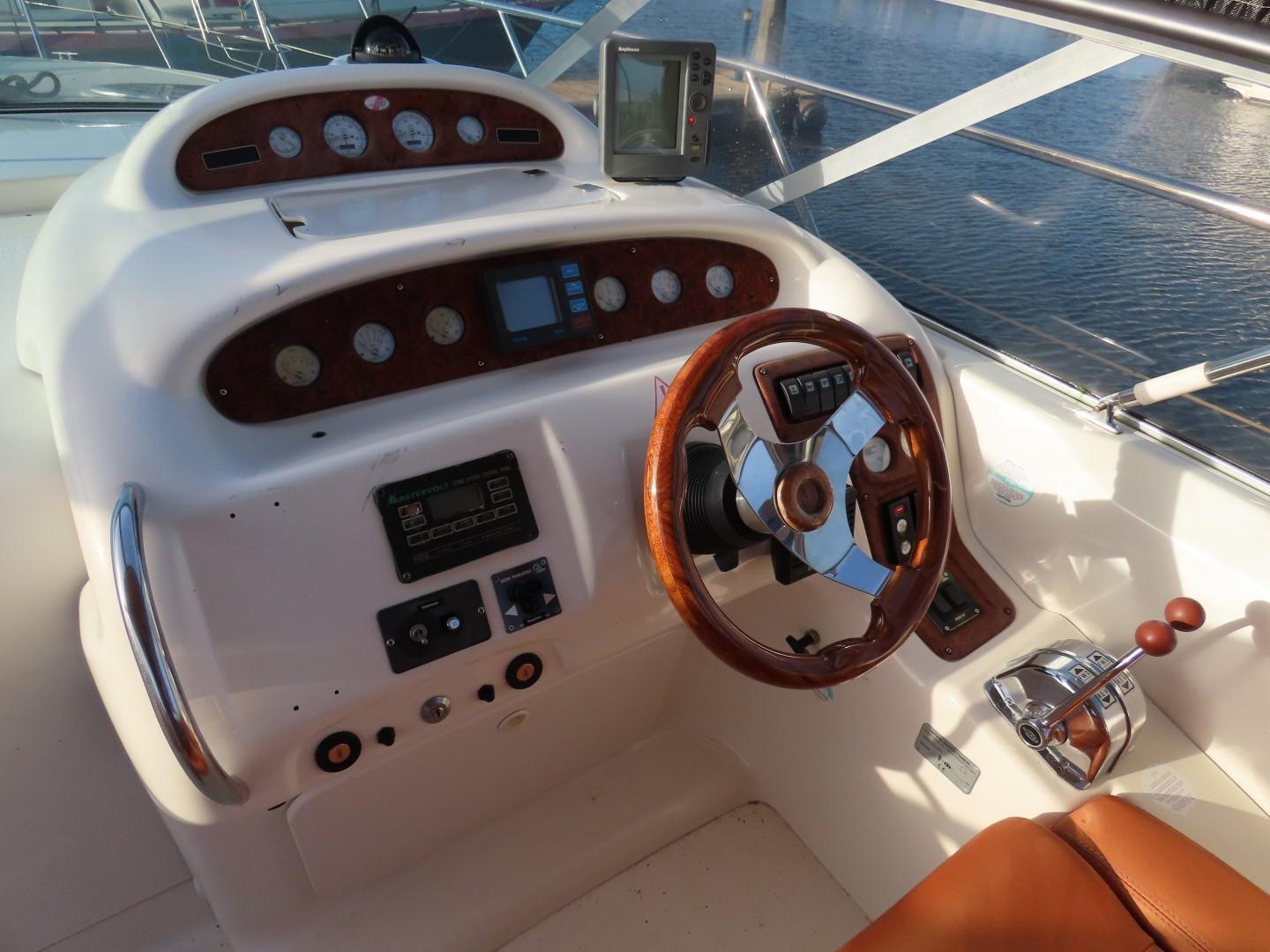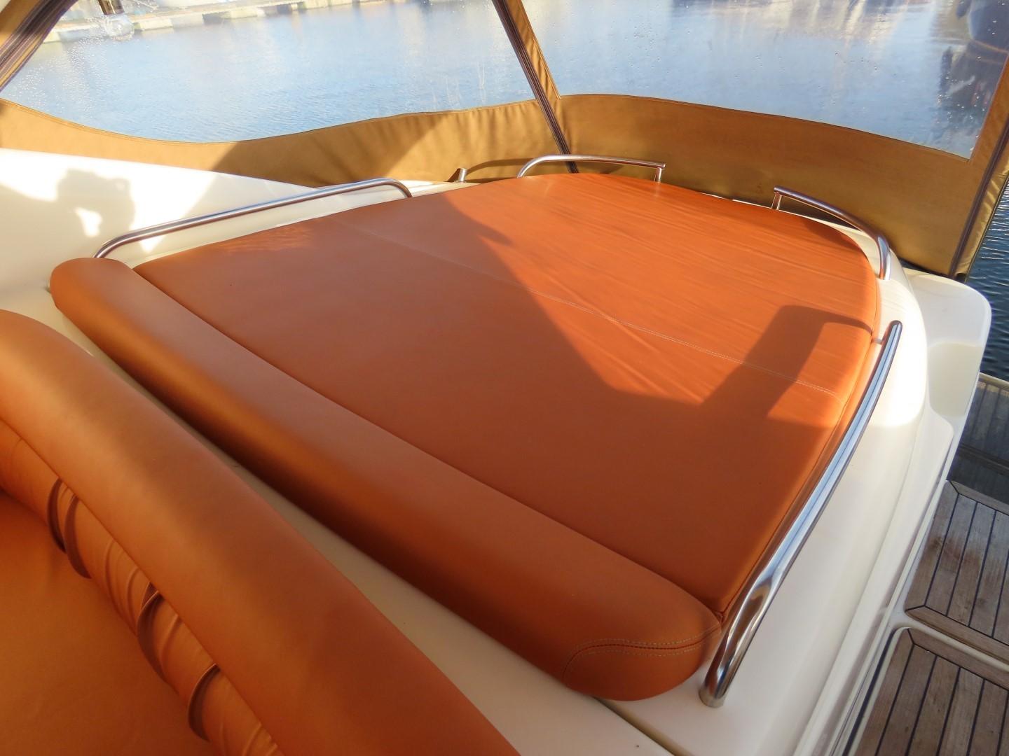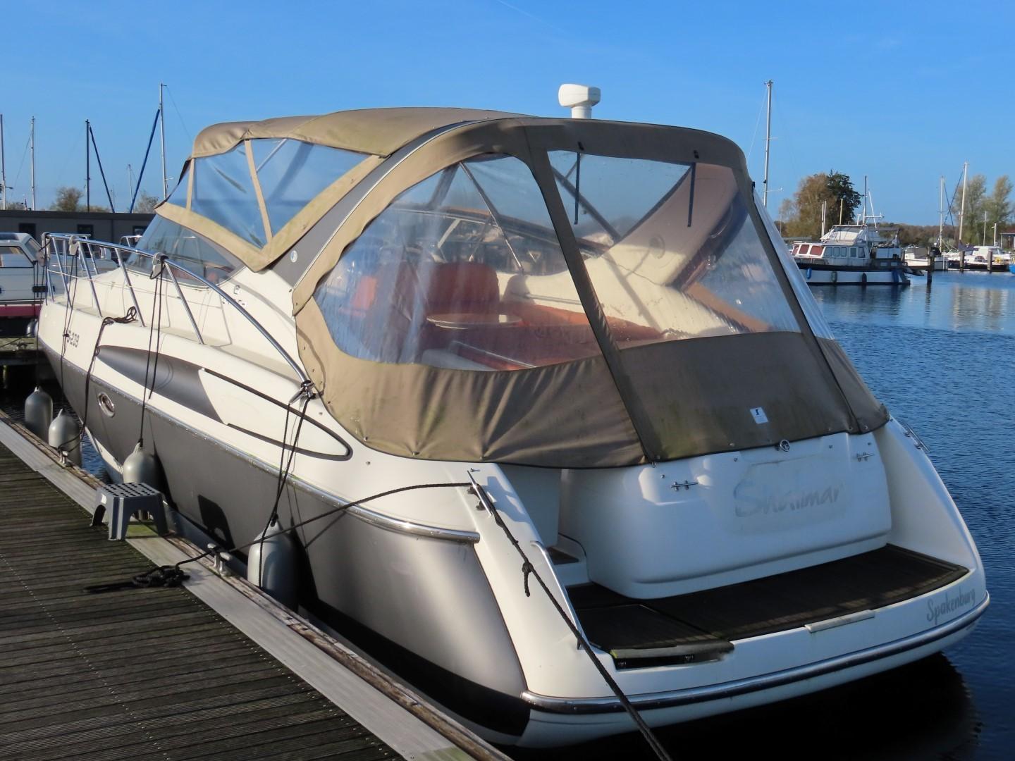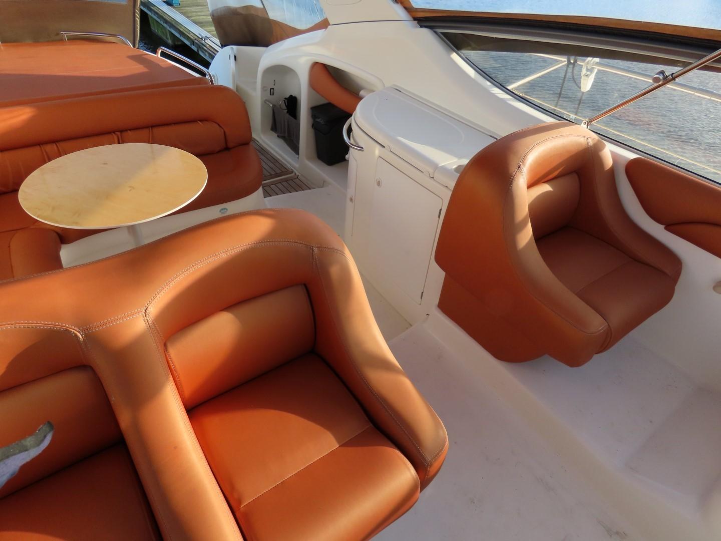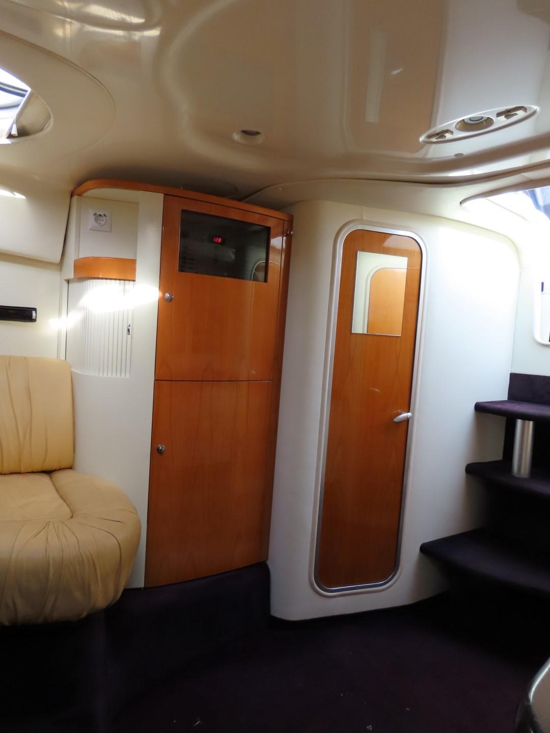 Snelle luxe sportcruiser met zeer royale kuip.  Italiaanse styling en goede vaareigenschappen. Boegschroef, omvormer en kap uit 2019. Elektrisch te openen garage voor bijbo