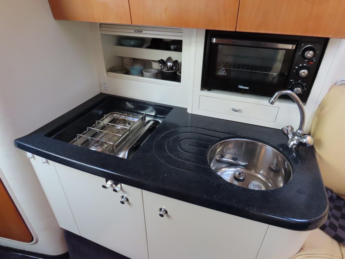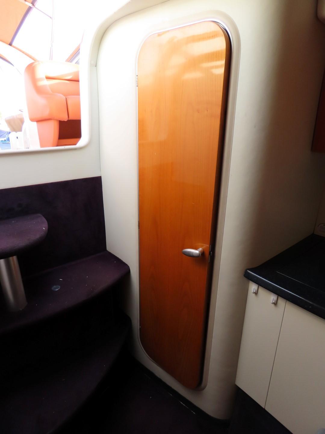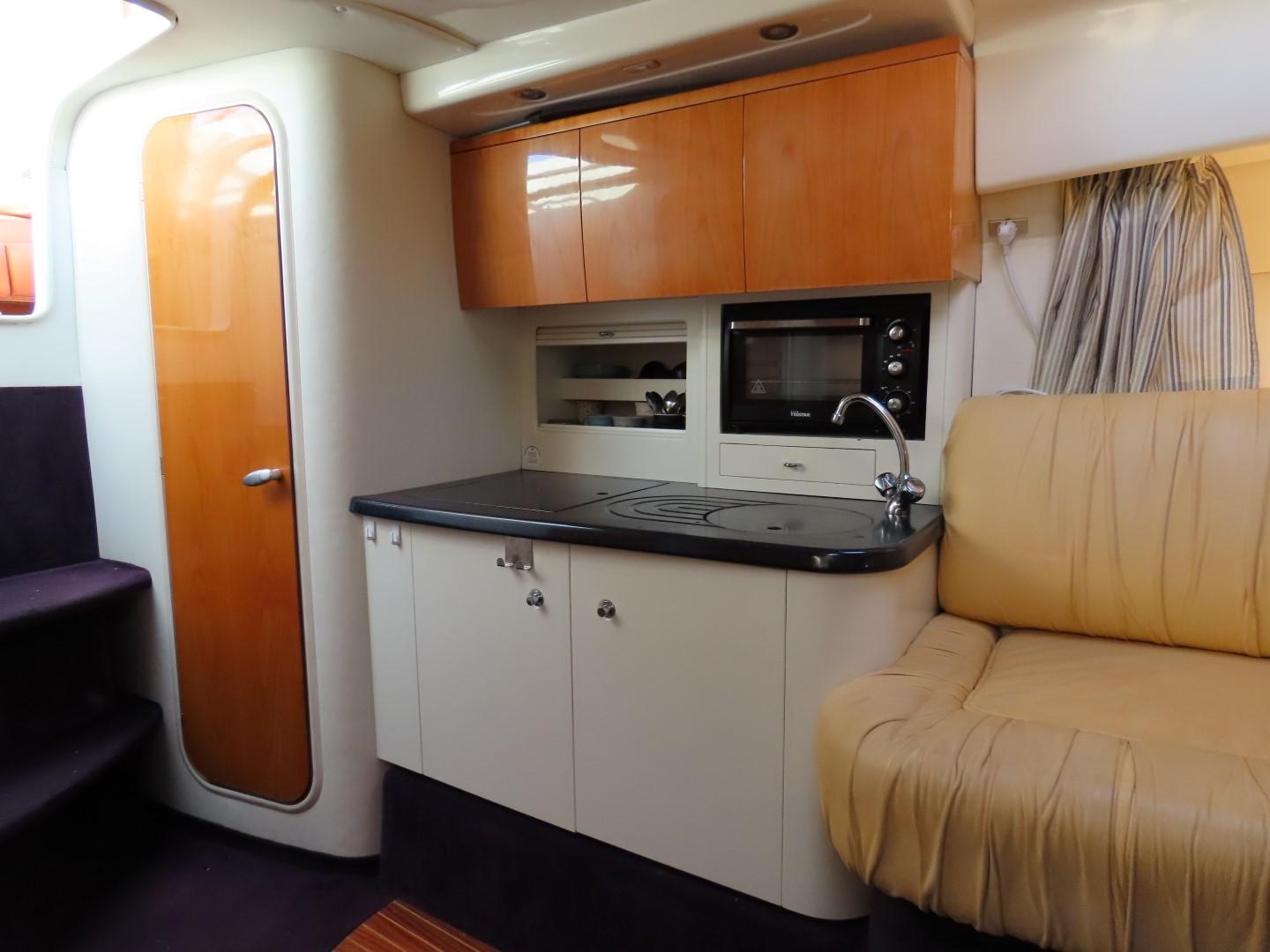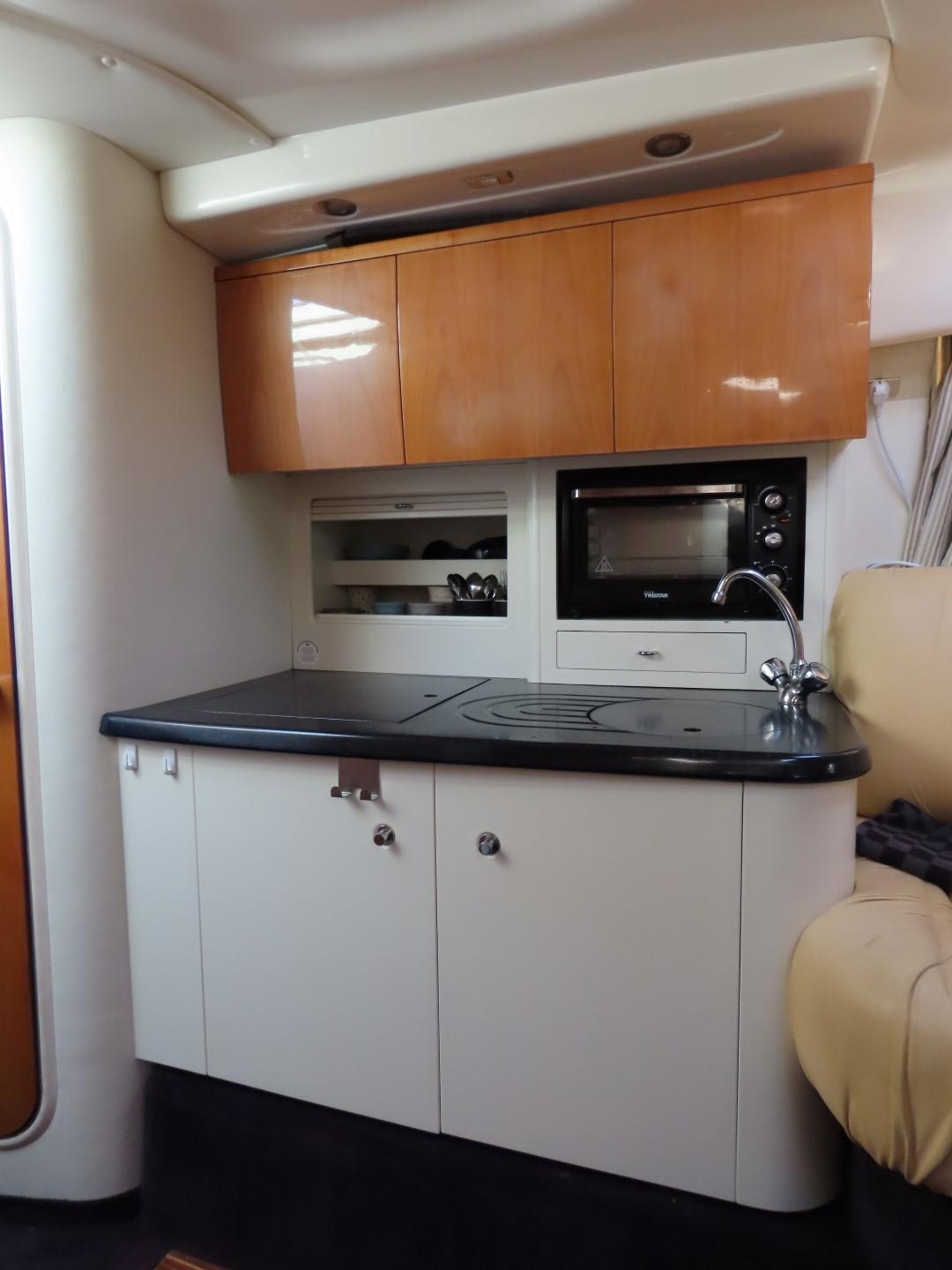 Snelle luxe sportcruiser met zeer royale kuip.  Italiaanse styling en goede vaareigenschappen. Boegschroef, omvormer en kap uit 2019. Elektrisch te openen garage voor bijbo