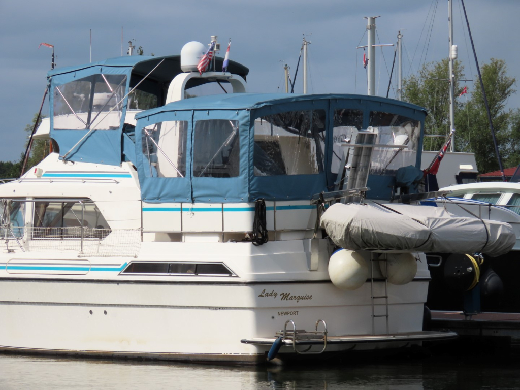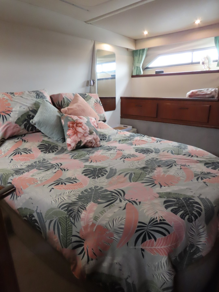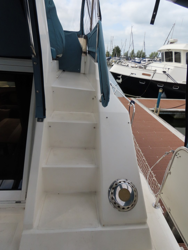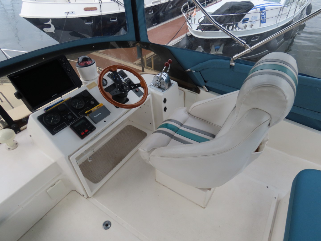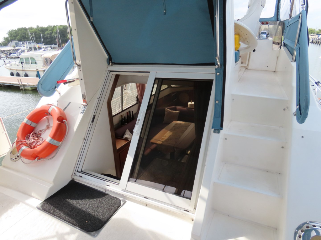 Goed onderhouden en zeer ruime Fairline 38 Turbo. Motoren met nog geen 800 uur, boegschroef, (nieuwe) generator en airconditioning, Buitenstoffering, kap en alle buitenzeilen nieuw.