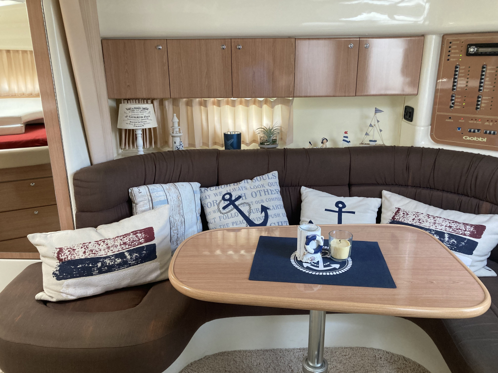 Fraai interieur met 4 vaste slaapplaatsen en heerlijke ruime kuip. Boegschroef, verwarming, navigatieapparatuur en elektrische ankerlier. Weinig vaaruren, professioneel onderhouden en `s winters in de hal.