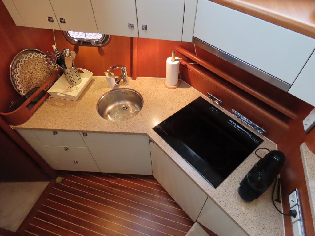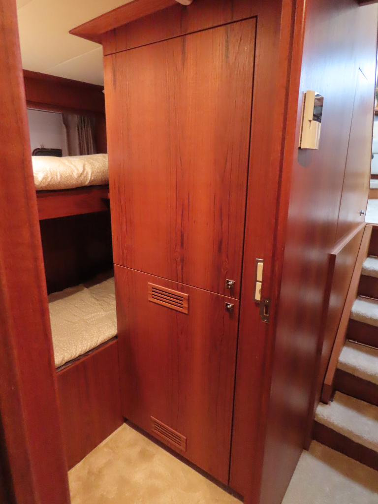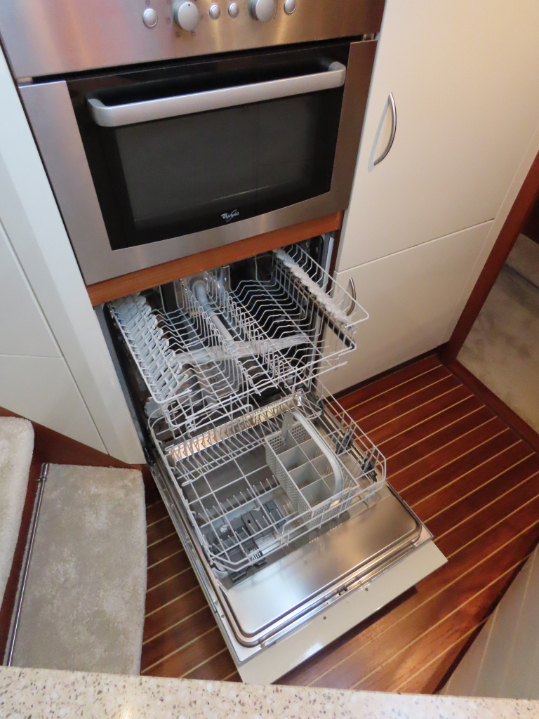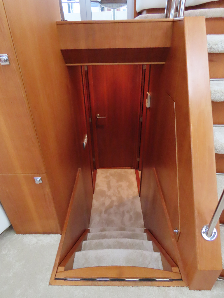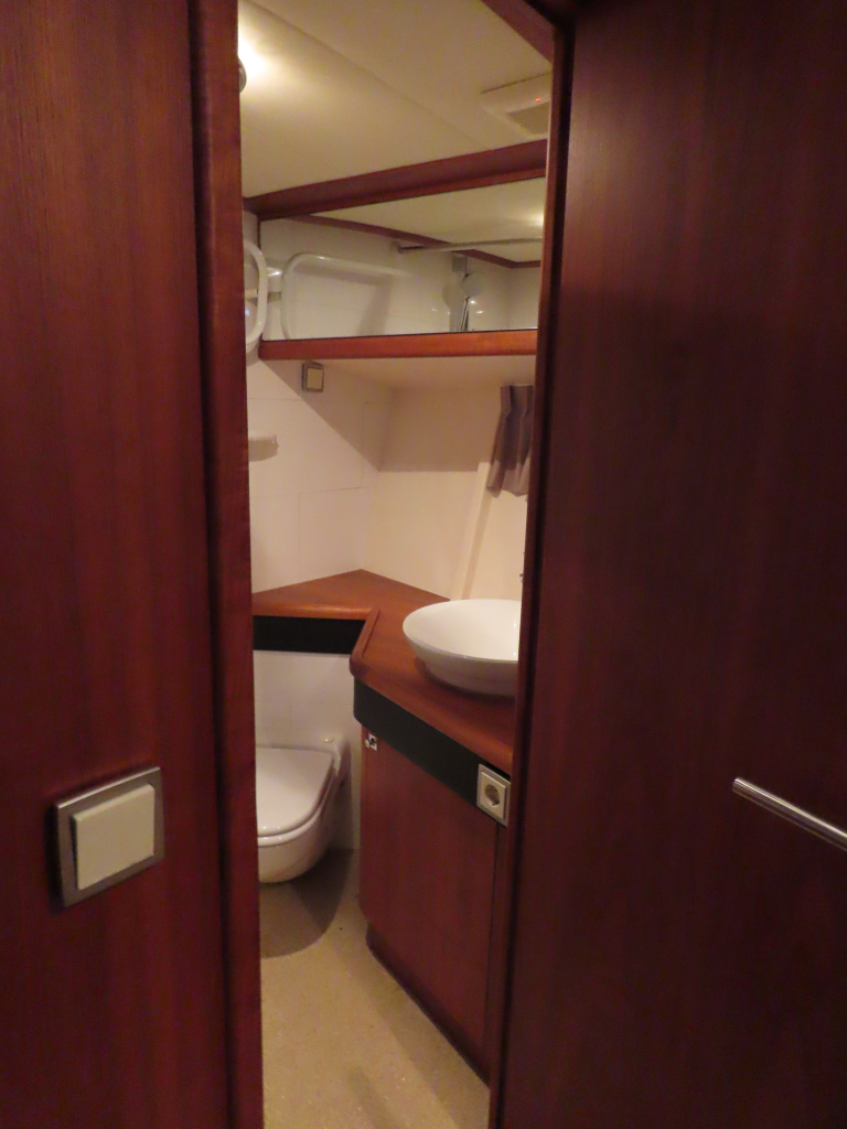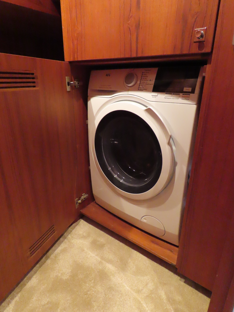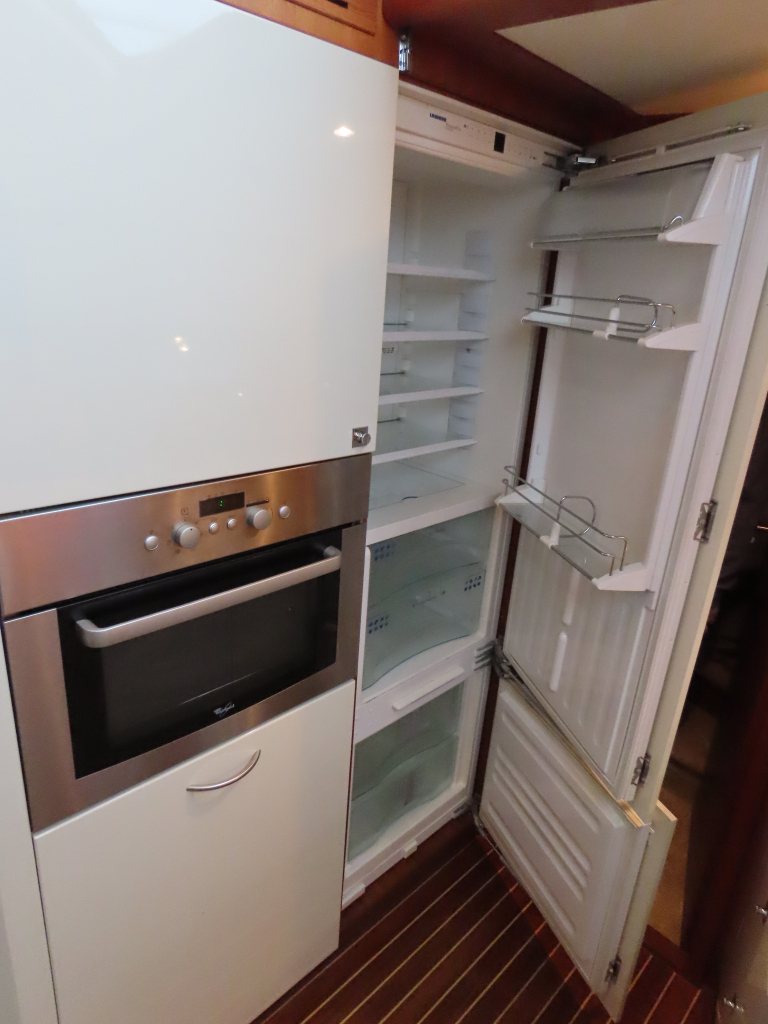 Bijzonder fraai teak interieur. 3 hutten met 6 vaste slaapplaatsen (2 x Frans bed) en 2 x douche/ toilet. Nieuwe lederen stoffering en vloerbedekking 2025. Vaatwasser, AEG wasmachine/ droger (2024), CV, airco in eigenaarshut.
