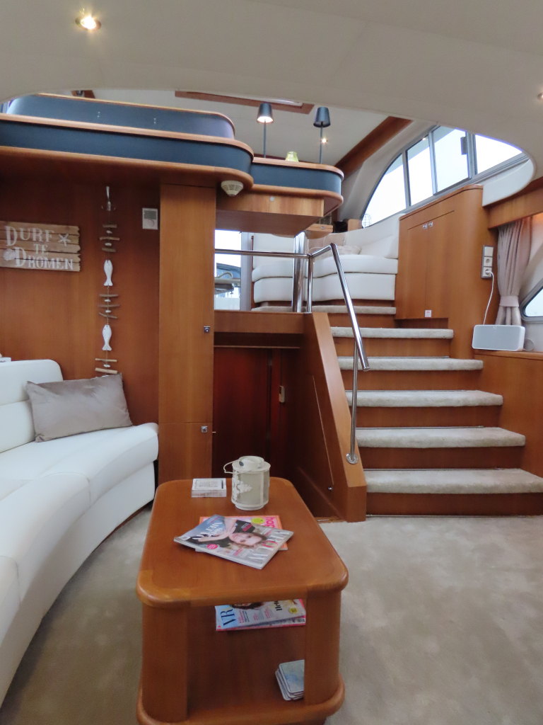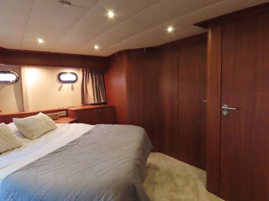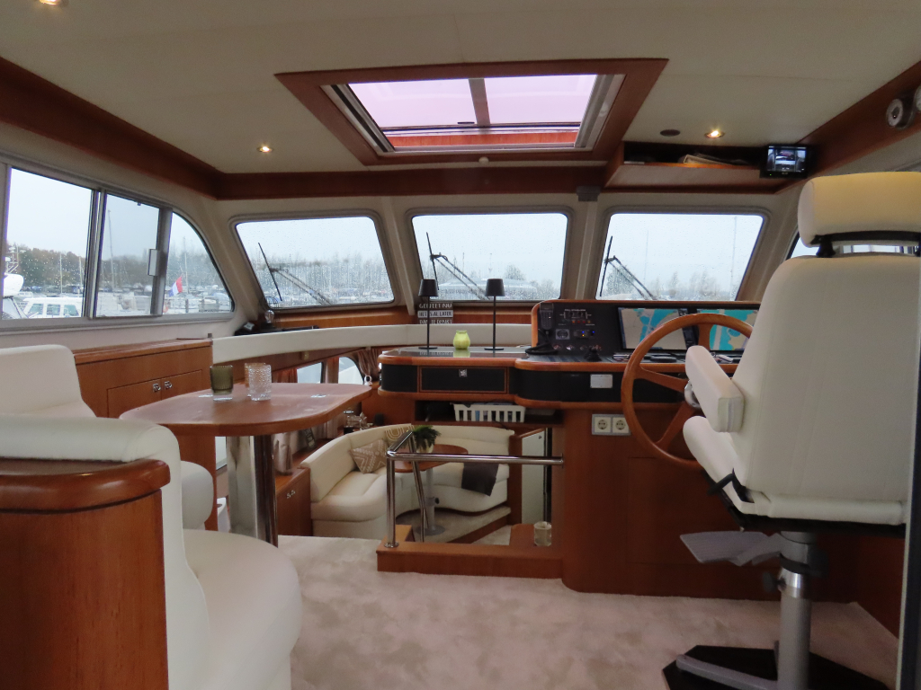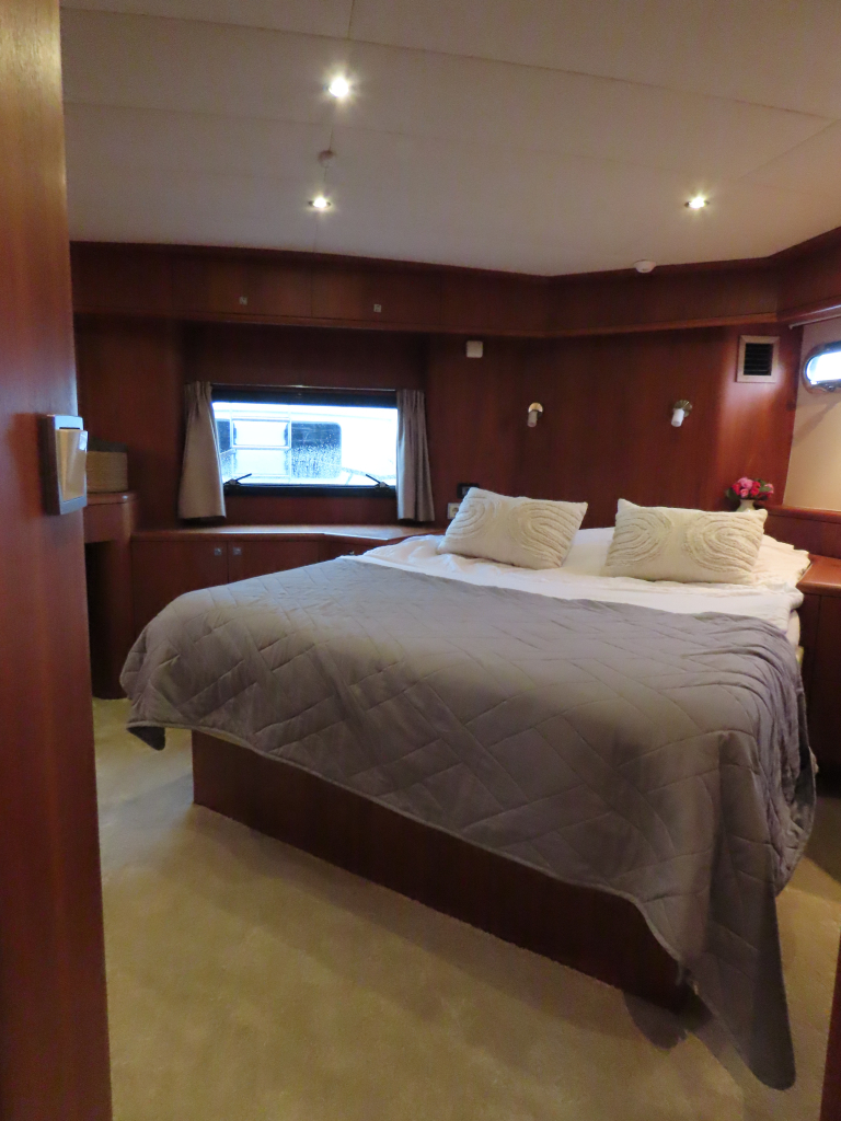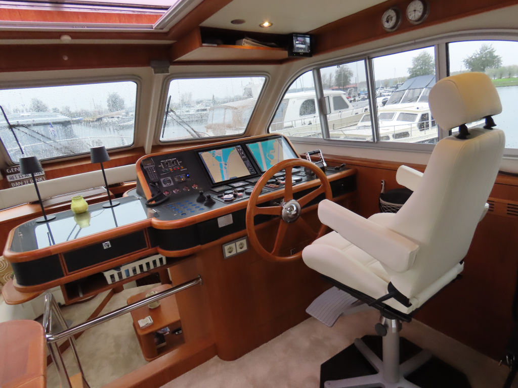 Prachtig luxe dubbelschroefs schip met omvangrijke uitrusting: boeg-en hekschroef, stabilizers, CV, navigatieapparatuur, enz. 2025 geheel gespoten en nieuwe stoffering.