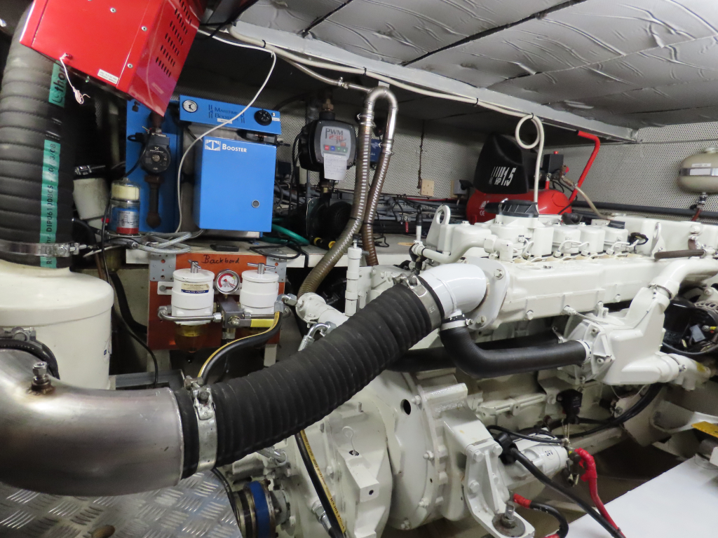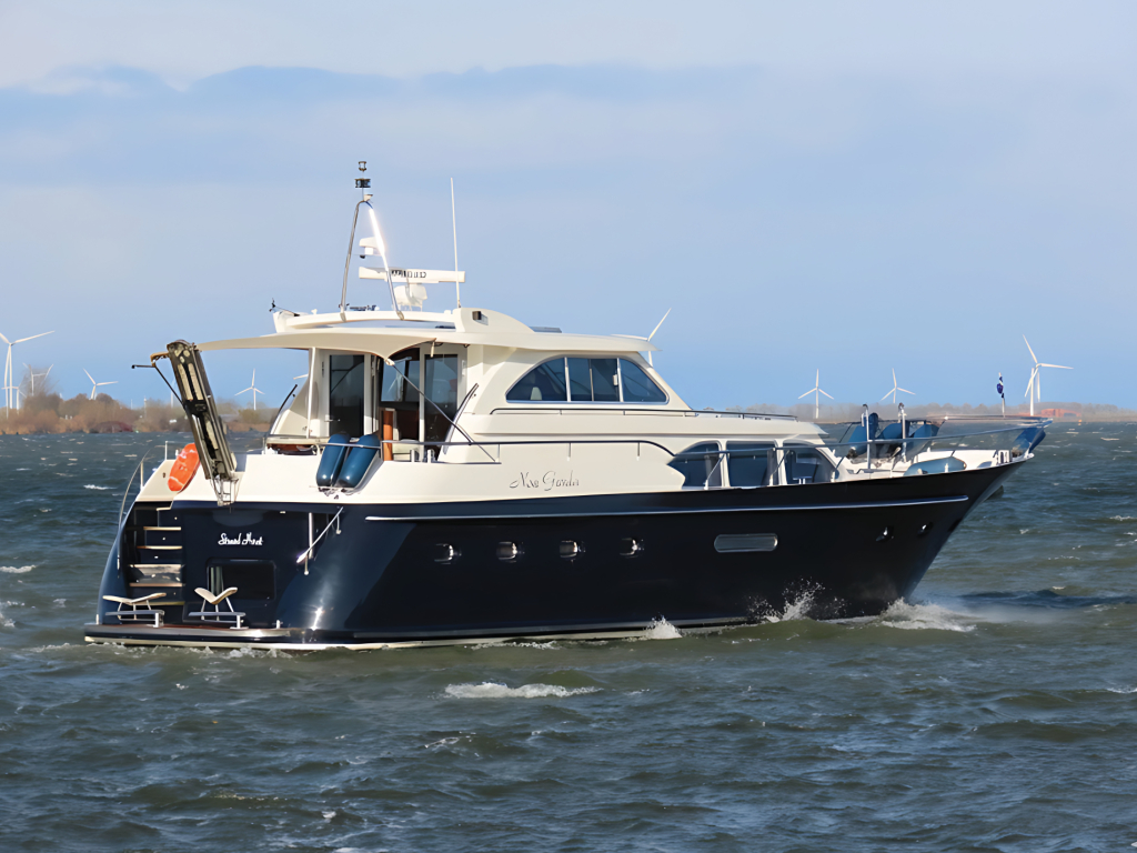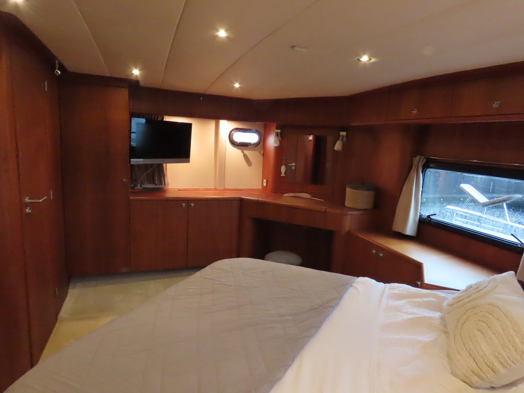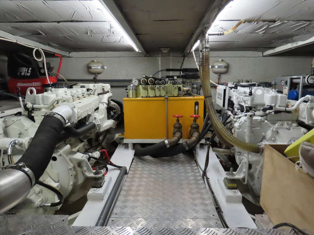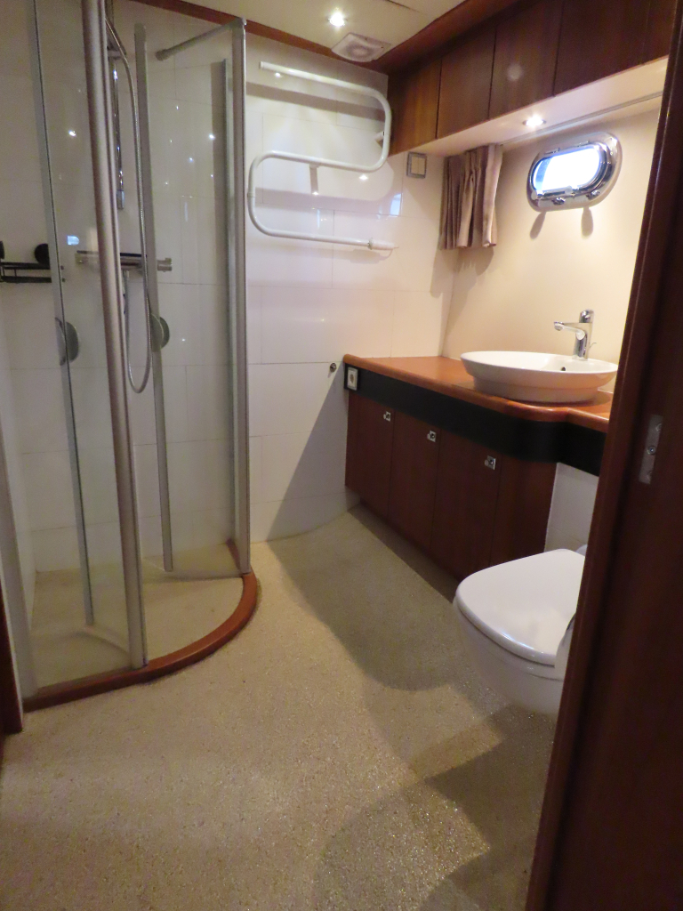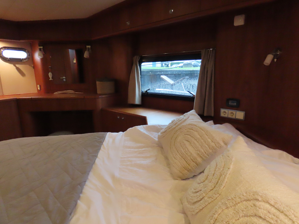 Prachtig luxe dubbelschroefs schip met omvangrijke uitrusting: boeg-en hekschroef, stabilizers, CV, navigatieapparatuur, enz. 2025 geheel gespoten en nieuwe stoffering.